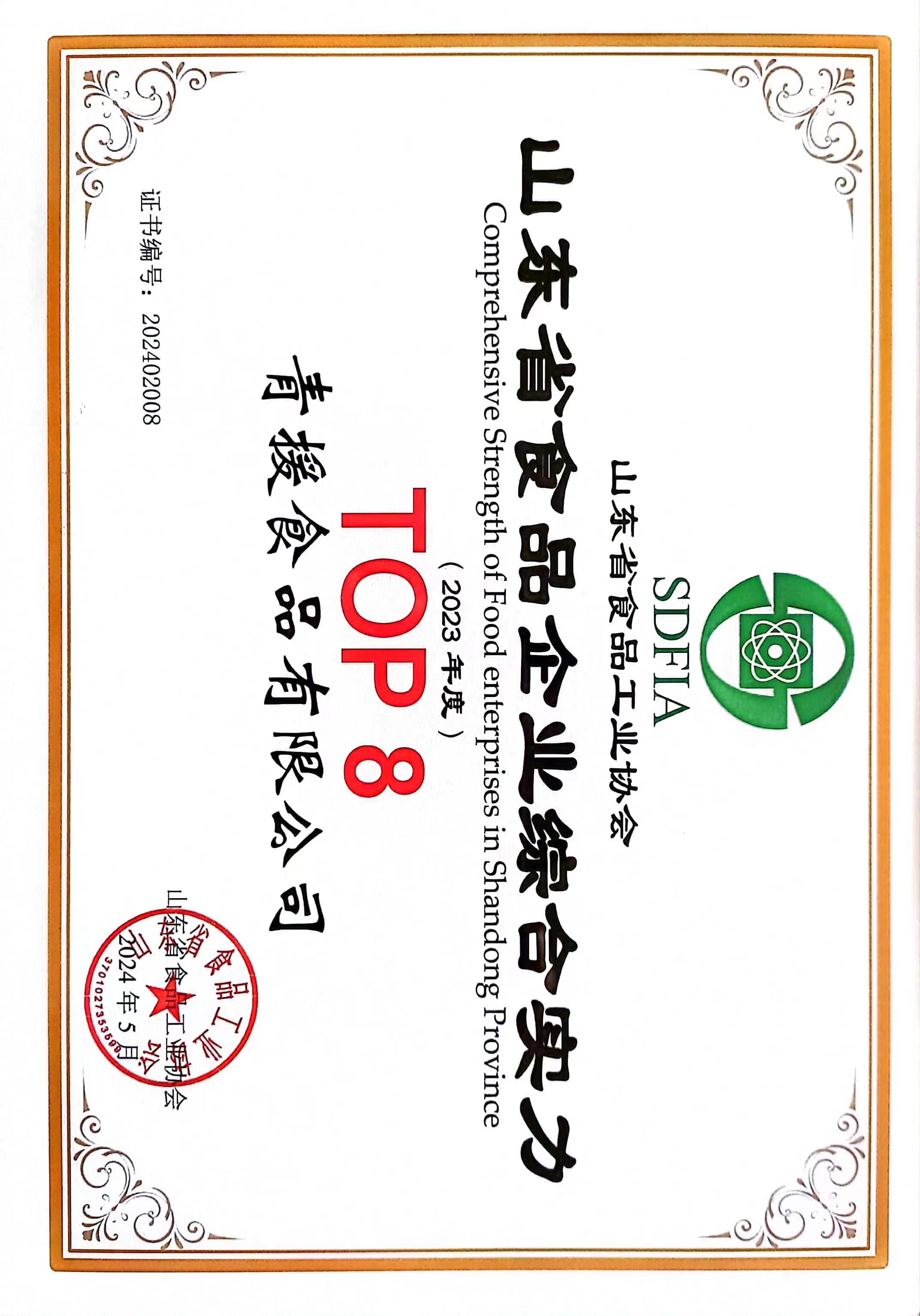 會上,對獲得2023年度山東省食品工業(yè)協(xié)會科學技術獎、協(xié)會優(yōu)秀單位、優(yōu)秀工作者、白酒(食品)企業(yè)綜合實力水平評價榜單上榜企業(yè)以及山東省第七屆葡萄酒果酒國家評委進行表彰。青援食品有限公司憑借企業(yè)強大的綜合實力、行業(yè)內(nèi)的重要影響力和良好的市場口碑被評為2023年度“山東省食品企業(yè)綜合實力TOP8”,公司開展的雙重發(fā)酵制備改性麥麩并協(xié)同菊粉制作高膳食纖維營養(yǎng)餅的研究項目榮獲“山東省食品工業(yè)協(xié)會科學技術二等獎”,公司副總裁桑振亮同志被授予“山東省食品工業(yè)科技創(chuàng)新領軍人物稱號”。